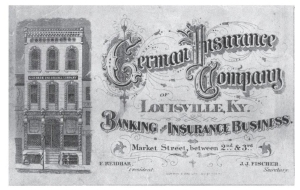 granted a charter by the Kentucky state legislature as the German Insurance Company. Organized by local merchants of German descent (although its first President was of French background), the company was originally authorized to conduct both an insurance and a banking business. An 1872 law required the company to split into separate insurance and banking concerns, the result being the German Insurance Bank and the German Insurance Company. Connections between the two companies remained close: they shared the same Board of Directors and the insurance company kept its surplus on deposit at the banking company.