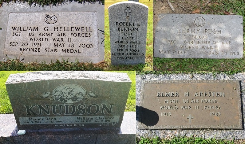 In several cases, draft registration cards either didn’t exist for the person or weren’t entirely useful. Lud Bevill’s draft card features a printed name totally unlike the cursive scrip found on the short snorter. For Leroy Pugh (back of note), the signature on his draft card was an uncertain match to that on the short snorter. However, his affiliation with the 644th Bomb Squadron could be confirmed by a photograph of his gravestone (pictured below). Likewise, in William Knudson’s case the signature match is not unambiguous. His gravestone (also below), includes at the bottom right the inscription “WW II VET SGT 9th AF.” For Bob Koerner (also back of note), his service in the 410th Bomb Group is noted in his obituary. Higbee’s (back of note) obituary also cites his military service in the same Group. As with Knudson, Elmer Arfsten’s (front of note) gravestone in Texas describes him as “M SGT US AIR FORCE WORLD WAR II KOREA”. Hellewell’s and Burton’s gravestones both refer to their Army Air Force service. While there is no mention of where Rodney Keith served, the signature on his draft card is an excellent match to that on the note. In the case of William C. Sullivan, while I can identify the “Jersey Kid” in the photographs below, I am less confident about his enlistment record, which I was unable to cross-check so as to confirm his exact date of birth. Sullivan is a common name, and New Jersey a populous state.