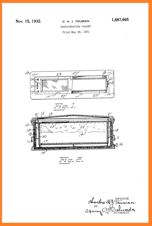 “Refrigerating Casket” Patent No. US1887665A
