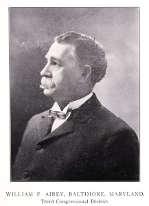 Airey’s tenure as Marshal was cut short when his reappointment in 1902 was challenged by Republican Representative Frank Wachter, who had won Maryland’s Third Congressional District and backed his own candidate for Marshal. Third District Republicans were solidly for Airey and the animosity between the Airey and Wachter forces welled up in the Republican City Committee, spilling over into the various Republican club meetings. This was a purely intramural spat between two party factions, a rather ordinary event in Baltimore’s politics (indeed, a year later Wachter and Airey patched up their differences, and the political game went on). Nonetheless, the dispute while it lasted occasioned remarks by Levi A. Thompson, the head of one such club who spoke before a group of Airey supporters. Thompson’s defense of Airey, reprinted by the Baltimore Sun, gave an extended characterization of what Airey meant for the Republican Party during that era of Baltimore politics: